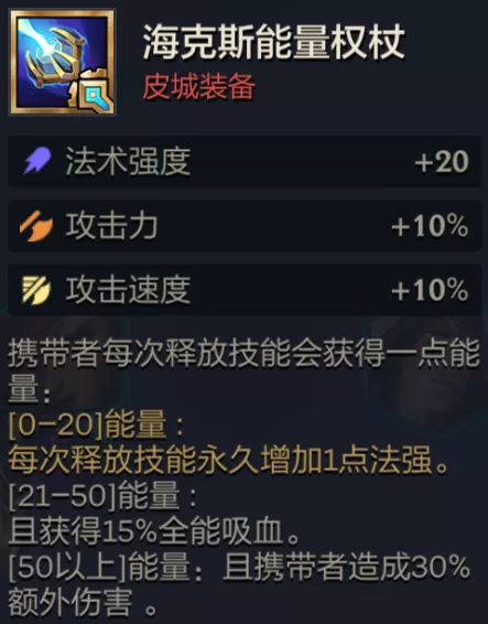 金铲铲之战海克斯能量权杖阵容推荐一、装备介绍法术强度+20 攻击力+10% 攻击速度+10%携带者每...